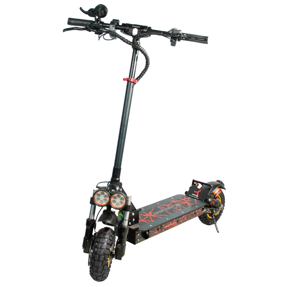 Самокат YOKAMURA RX1 на одном заряде аккумулятора преодолевает расстояние 60 км. Дисковая тормозная система на переднем и заднем колесе позволяет совершать маневры, амортизация делает движение электросамоката плавным даже на не ровной дороге. Производитель предусмотрел внешнее освещение для передвижения в темное время суток.