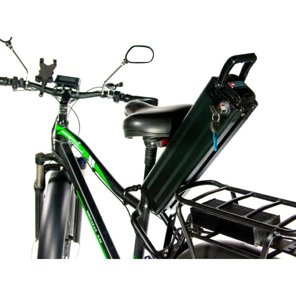 Батарея размещена в подседельной зоне, надежно защищена от негативного воздействия внешних факторов. Оснащенность техники багажником допускает перевозку пассажира. Главное, чтобы общий вес райдера и пассажира не превышал 120 кг.
