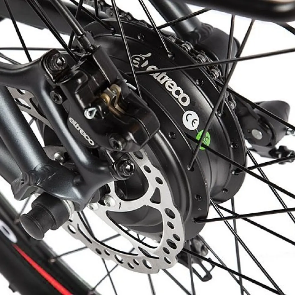 Установлен электродвигатель мощностью 500W, плавно трогается с места. Оснащён семи скоростной трансмиссией. Велогибрид имеет яркую светодиодную переднюю оптику и задний светоотражающий катафот. За остановку велогибрида отвечает дисковая гидравлическая тормозная система спереди и сзади. Тормоза отлично реагируют в любых погодных условиях и дают возможность плавной остановки.