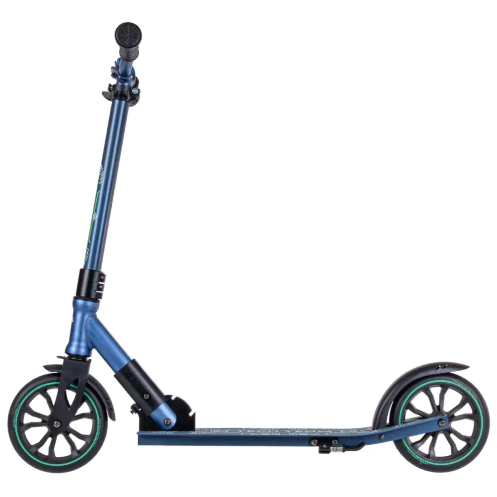 Самокат выглядит современно, привлекательно на фоне аналогичной техники. Представлен компактными эргономичными характеристиками, качественный и долговечный. Рулевая часть изготовлена из облегченного прочного алюминия, регулируется по высоте в пределах   900-950-1000 мм.