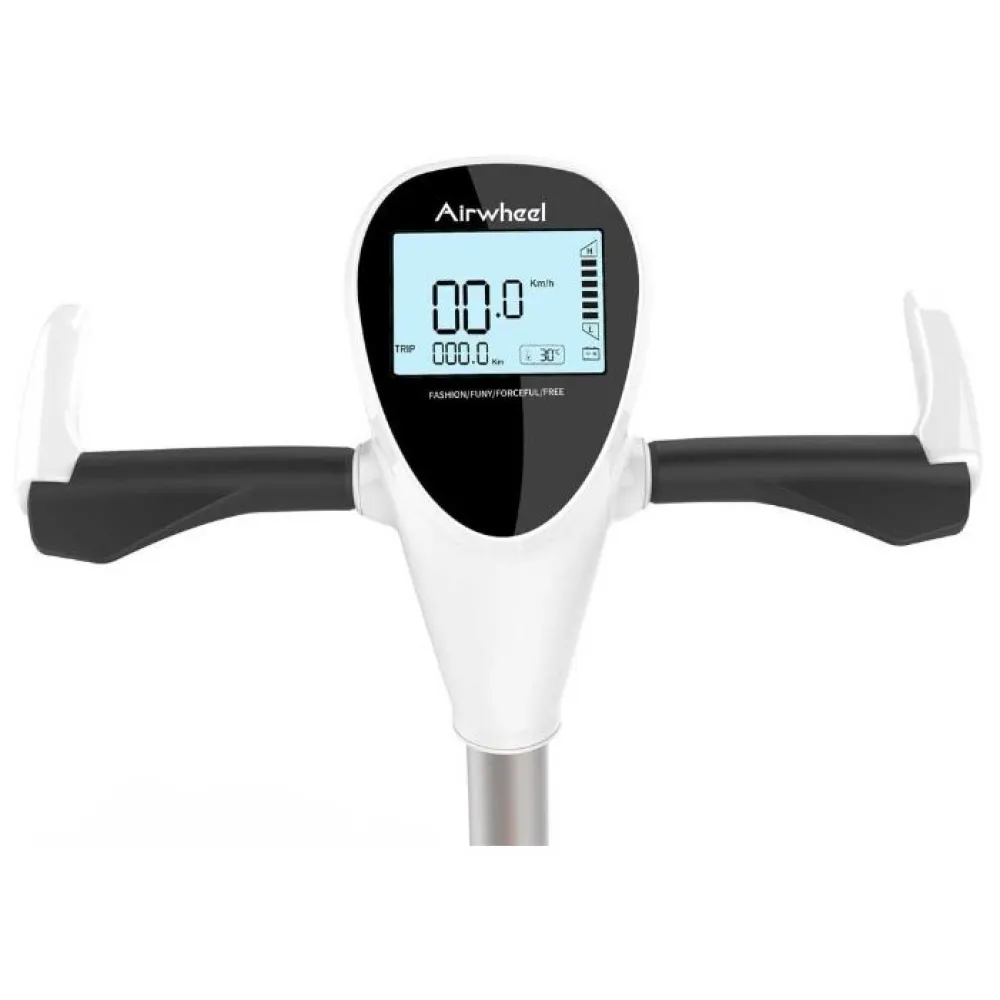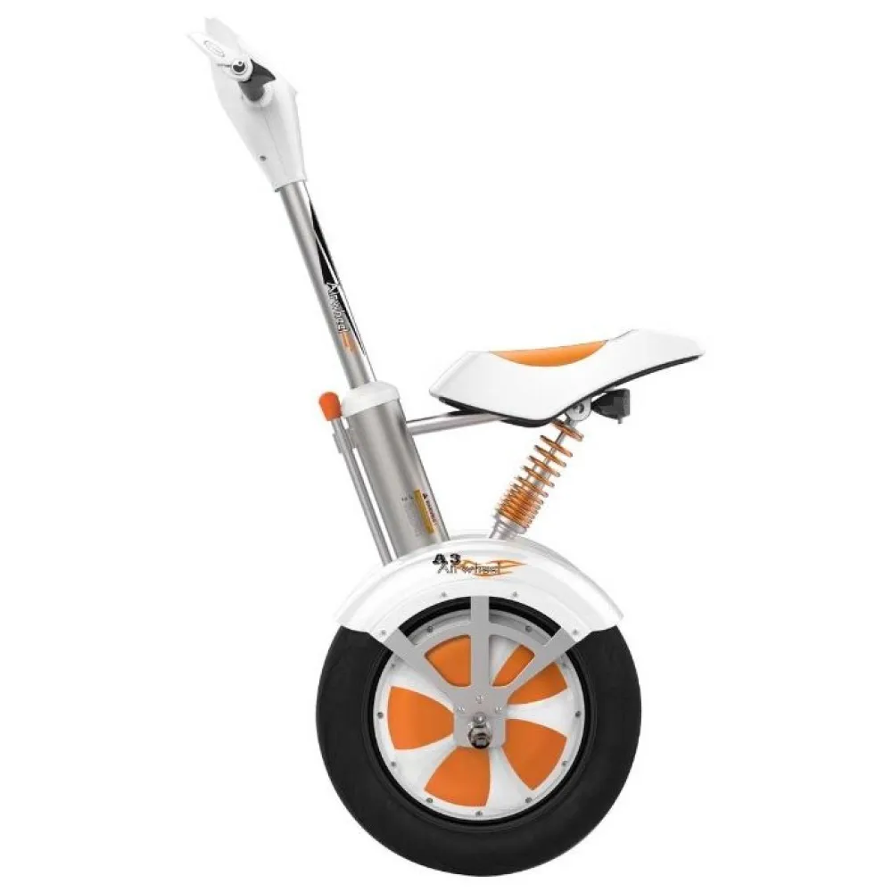 Отличия сигвея Airwheel А3 заключаются в том, что у него нет платформы. Для ног предусмотрены подножки. Есть удобное, амортизированное сидение, его можно комфортно отрегулировать. Управление байком происходит с помощью руля на нем же расположен информационный дисплей, благодаря которому можно контролировать основные показатели.